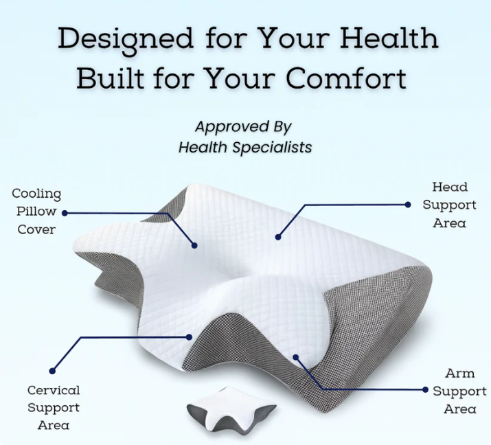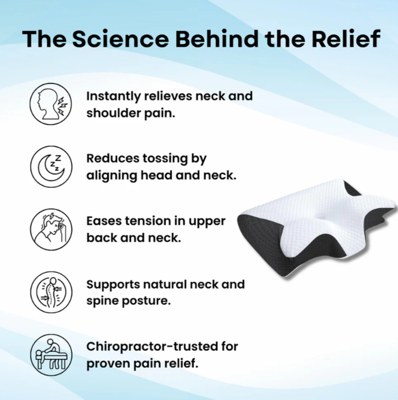 The Pillow is a solution for neck, shoulder, and back pain, offering pressure relief and spinal alignment with adaptive memory foam.